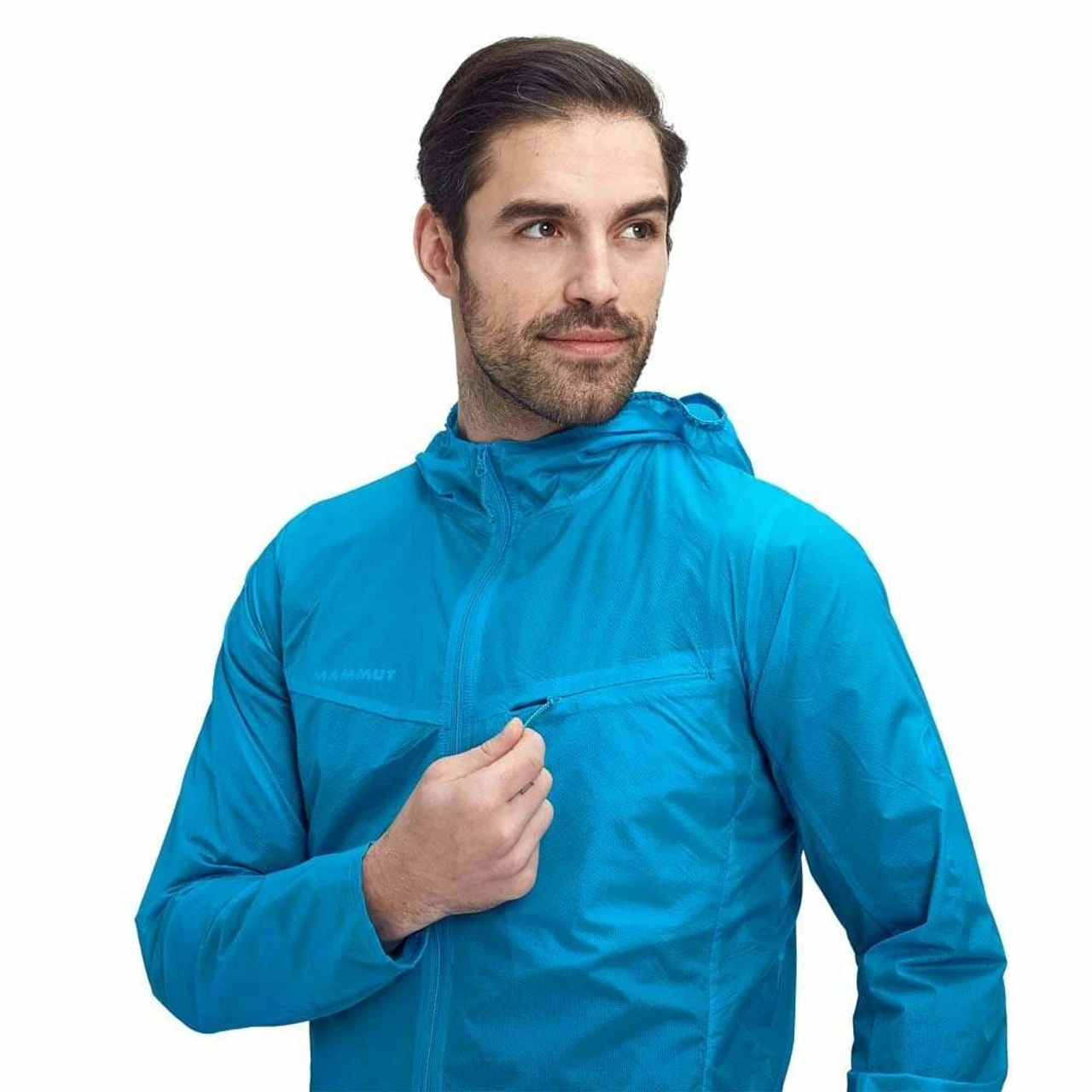The Convey WB Hooded Jacket from Mammut is a super light-weight and tough feeling windproof. The jackets folds up neatly into its chest pocket for easy carrying.