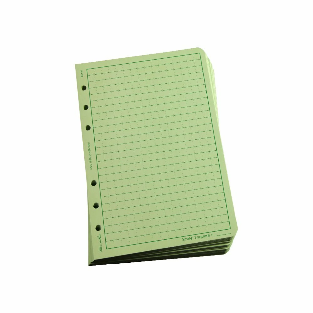 The Tactical Loose Leaf sheets have a round 6-hole punch to fit the Rite in the Rain Field Ring Binders (sold seperately). Printed on 32# Rite in the Rain paper. 100, 4 5/8 in x 7 in sheets per pack of waterproof, weather-proof paper.