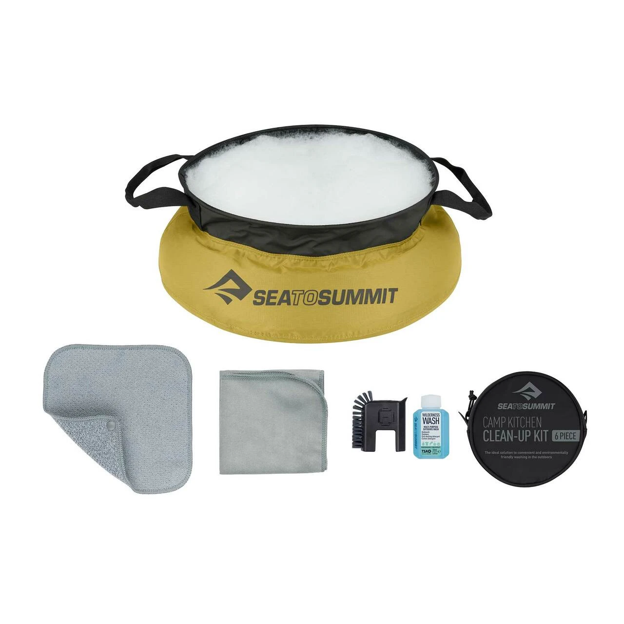 - Includes: Kitchen sink, pot scrubber, wilderness wash, washcloth, DryLite towel